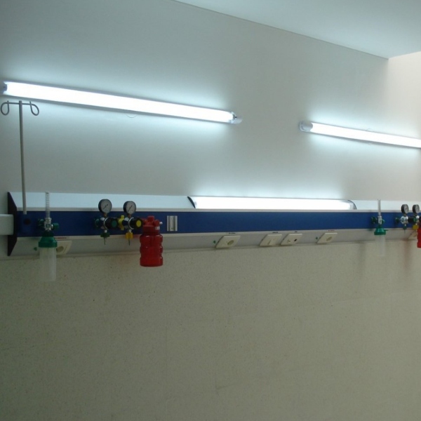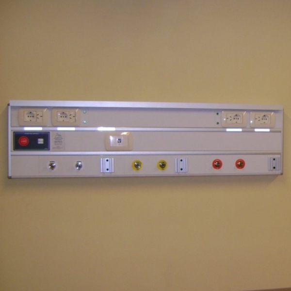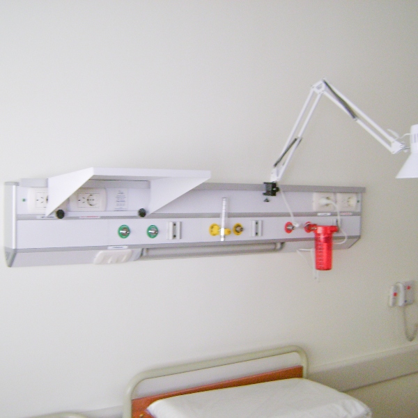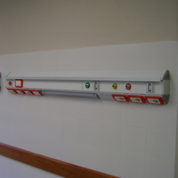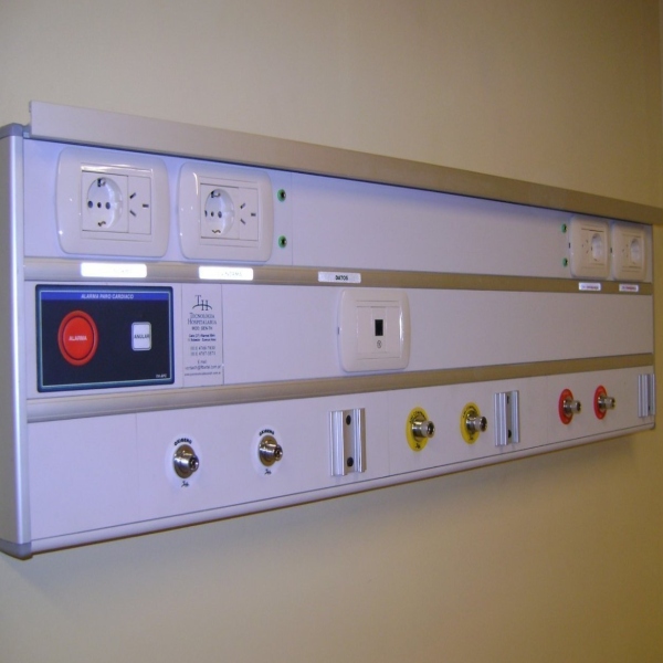Usos: Estos paneles han sido desarrollados para administrar los gases medicinales a los pacientes a través de equipos centralizados. Pueden alojar servicios eléctricos, sistemas de llamados de enfermera, alarmas de paro cardiaco, datos y telefonía, todo esto de la manera más cómoda y eficiente, para una mejor estadía del paciente. Presentaciones: Los paneles de cabecera se adaptan individualmente a todos los requerimientos hospitalarios. Estos equipos pueden fabricarse en las más variadas longitudes y prestaciones, de acuerdo a las necesidades de cada sector.